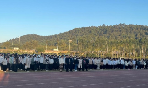 为深入学习贯彻党的二十大精神,激发广大师生爱国热情,大力弘扬劳模精神、劳动精神、工匠精神,并以“三种精神”为指引,进一步加强我院学风建设,11月20日,文化旅游学院于清远校区足球场开展“扬爱国主义,树文明新风”升国旗仪式暨主题党日活动。
