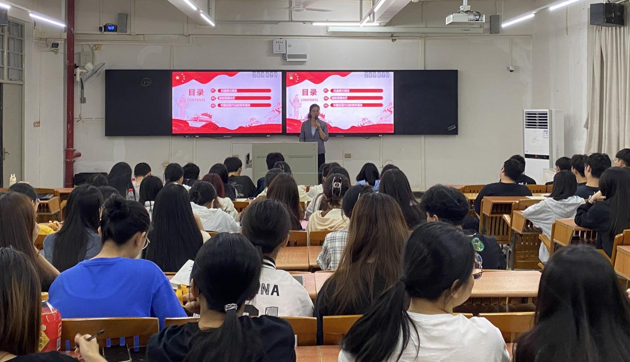 课程伊始,谭金凤副院长以习近平新时代中国特色社会主义思想创立和发展的时代背景来展开,结合专业学习的实际,详细阐述习近平新时代中国特色社会主义思想的世界观和方法论和中国式现代化的青年使命等方面内容,旨在教育引导广大学生牢记嘱托、砥砺奋进,积极投身中国式现代化的广东实践,为强国建设、民族复兴,贡献青春力量;广泛开展新时代伟大成就、国情和形势政策教育,教育引导广大学生持续增强对党和国家未来发展的信念信心,牢牢把握团结奋斗的时代要求,不断厚植家国情怀,涵养进取品格,励志担当大任,把个人发展融入民族复兴的伟业之中。