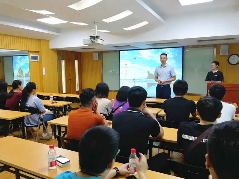 而后,在员工培训室中,同学们观看了企业宣传片以及企业文化活动视频。张彦浩副总经理从企业发展历史、企业文化内涵以及员工培养等多个方面向同学们介绍了情况,并耐心地一一回答了同学们针对岗位、福利待遇等一系列的问题。中午时分,同学们体验了员工自助午餐,进行了温泉体验。