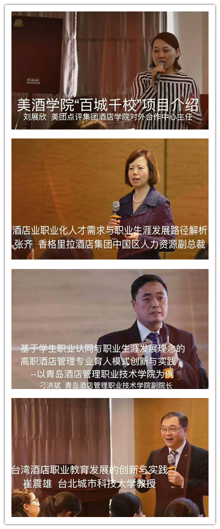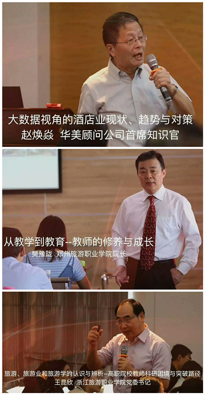 本次培训为国家旅游局2017年度重点工作计划项目,培训围绕酒店管理专业教师自我成长展开,依托“寻找问题、实践探索、寻求突破”三个主题,首先由郑州旅游职业学院院长樊豫陇做“从教学到教育---教师的修养与成长”为主题的报告。华美顾问公司首席知识官赵焕焱演讲从行业角度出发,从大数据视角看酒店业现状、趋势及对策。台湾城市科技大学观光学院教授崔震雄博士则讲述台湾酒店职业教育发展的创新与实践。香格里拉酒店集团中国区人力资源副总裁张齐行业问道,指出了酒店业职业化人才需求和职业生涯发展路径解析。浙江旅游职业学院党委书记王昆欣教授从教师的个人角度出发,注重教师的科研能力提升从旅游、旅游业和旅游学的认识和辨析出发,指出高职院校教师科研困境和突破路径。美团点评集团酒店学院执行院长徐期宏和对外合作中心主任刘展欣也做了新业态下酒店的发展趋势判断。青岛酒店管理职业技术学院刁洪斌最后做了精彩的酒店管理专业建设经验介绍,如何将一个名不见经传的小专业建设成国家高职院校中一流的酒店管理人才培养摇篮。此次培训邀请了职业教育界和行业界专家授课,会后安排了青岛温德姆至尊酒店和青岛涵碧楼酒店的参访和案例分析。