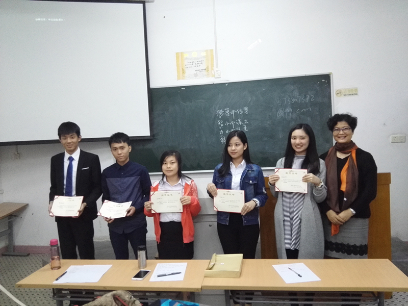 尔后,陈丽芳老师宣读了表彰决定,并对何伟浚、高秀梅、薛旭燃、黄东阳、何梅娟共5位在实习中表演优秀的同学进行了表彰,鼓励同学们向先进学习,做好自己的本职工作。特别表扬陈建辉同学在刚结束手术后都依然坚持不放弃实习,这种不放弃不退缩的精神值得所有的同学们学习。