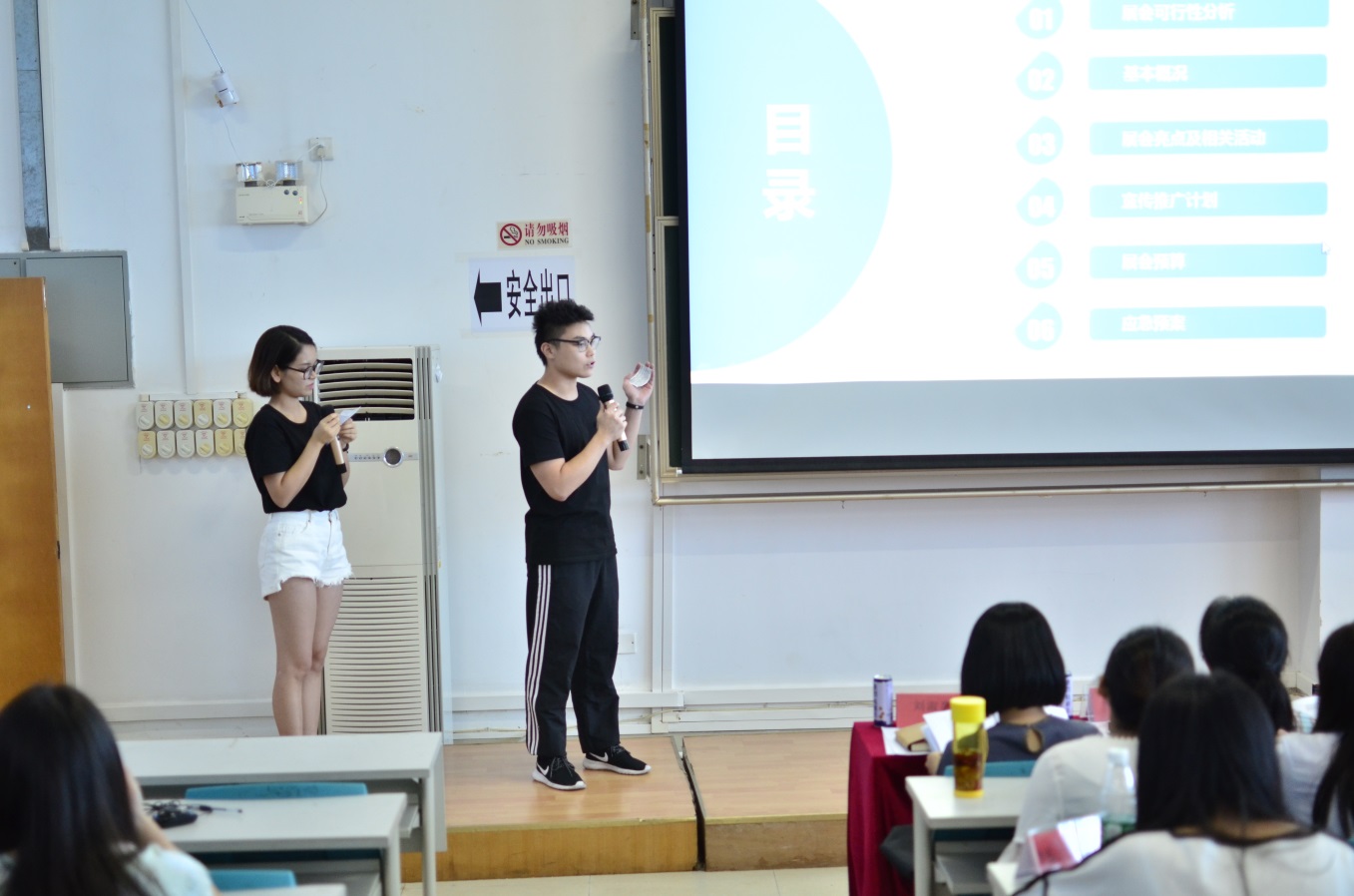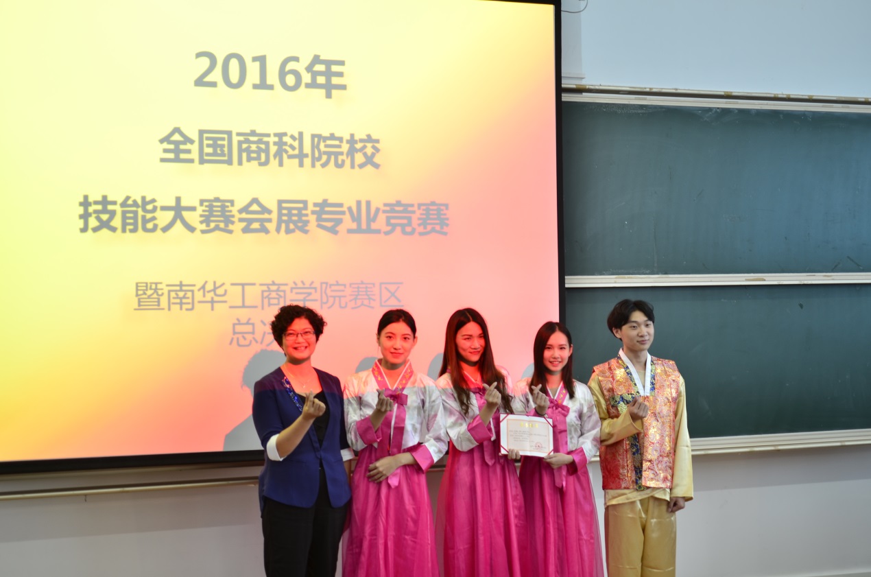 2016年10月24日下午,由旅游管理系主办、会展工作室承办的第十届全国商科院校技能大赛会展专业竞赛南华工商学院赛区选拔赛暨第七届南华工商学院会展专业技能大赛在黄埔校区南区C203课室落下帷幕。本次大赛分为初赛和复赛两个阶段。大赛于5月份启动,6月份举行了初赛。来自会展专业的110名同学报名参加了以个人为单位进行的初赛——会展管理知识竞赛,其中89名同学合格,获得了参加复赛的资格。经过层层筛选,最终推选出6组团队,23人进入复赛。本次大赛的评委团由旅游管理系副主任谭金凤老师、旅游管理专业群带头人梁滔滔老师、会展策划与管理专业负责人陈晓华老师及专业教师陈屹珊、王超、刘淑惠、潘新洁老师组成,对各组的陈述及方案提出尖锐的问题并给出指导意见。比赛中场休息期间及赛后,师兄师姐和师弟师妹们进行了别开生面的交流学习和互动。