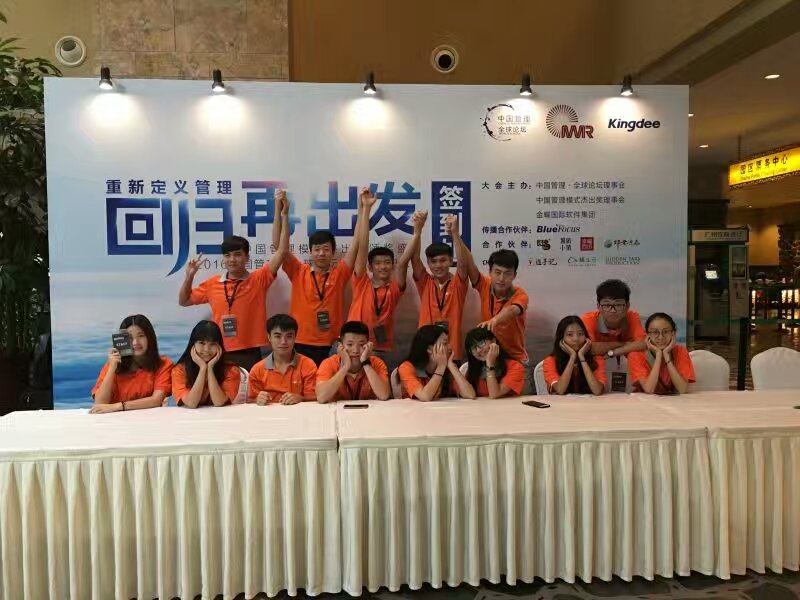 10月24-28日,由中国管理·全球论坛理事会、中国管理模式解除奖理事会、金蝶国际软件集团主办的“2016中国管理全球论坛暨金蝶用户大会”在广州长隆酒店举行。我院旅游管理系选出2015级会展专业14名小精灵组成团队,通过本学期《会议接待实务》课程的学习和活动前期短期培训后,为本次会议保驾护航。