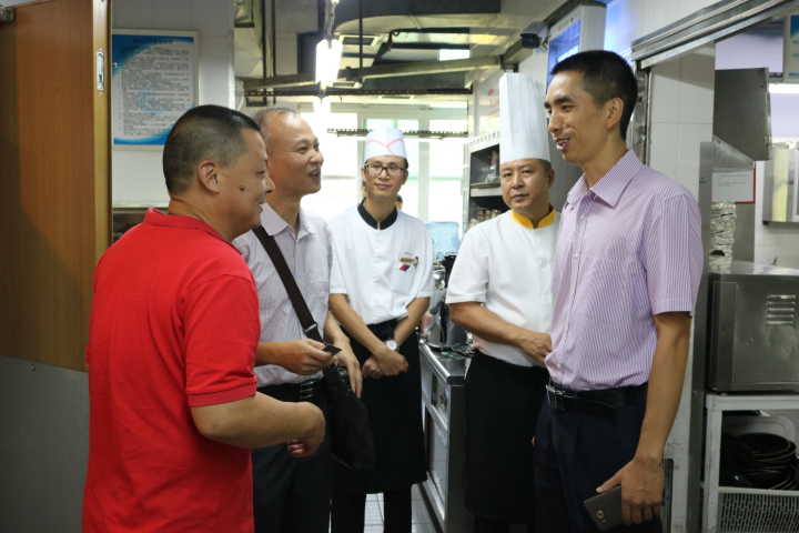 图三 张彦浩董事长助理(右一)、王长聪行政总厨(右二)、张树清老师(左二)