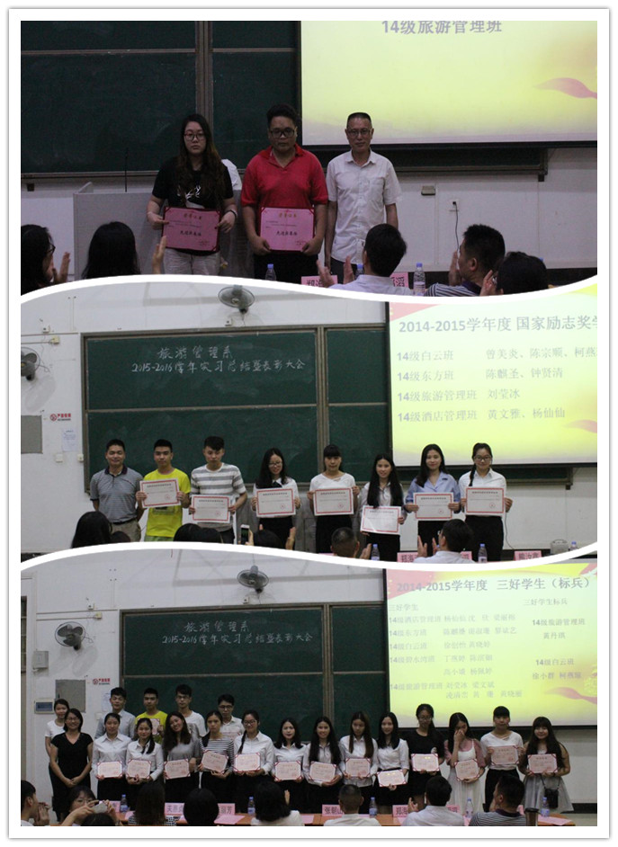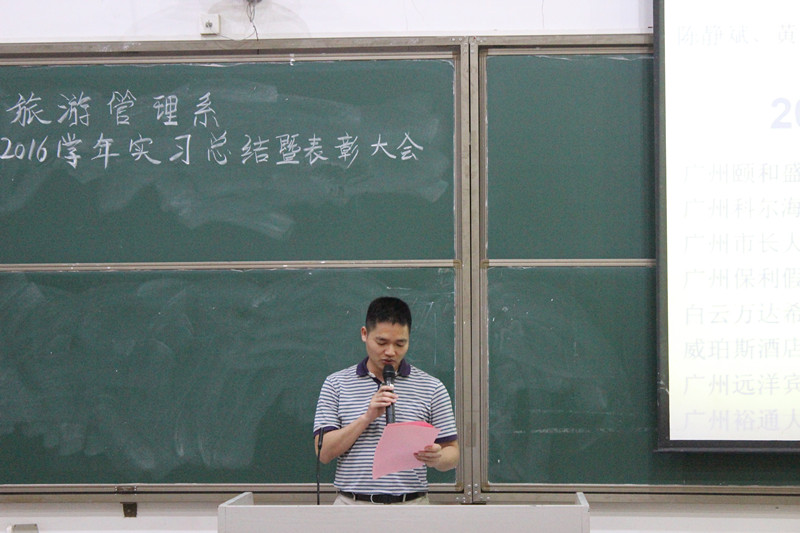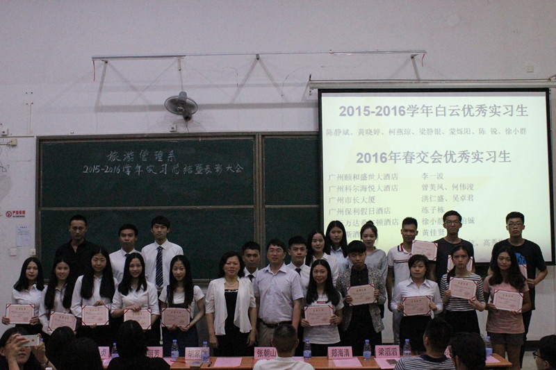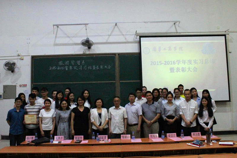 5月24日晚,在清远校区举行了旅游管理系2015-2016实习总结暨表彰大会。学生工作处张朝山处长、教务处郑海清副处长、旅游管理系胡家夏主任、旅游管理专业群群主梁滔滔老师、酒店管理专业教研室主任陈丽芳老师、关惠贞老师、杨小衡老师、熊汝鑫老师、黄隽老师受邀出席,清远校区2014级、2015级学生出席。