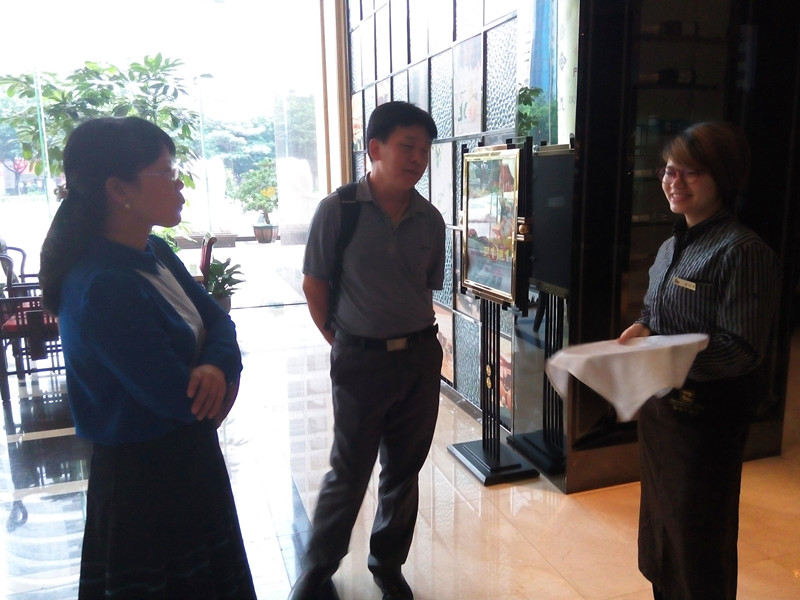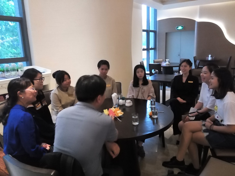 学生们对老师们的到访感觉特别兴奋,带着老师们走访了工作岗位,滔滔不绝地向老师们汇报实习中的收获。随后在酒店的安排下召开了师生交流会,同学们畅所欲言。虽然在实习初期存在不适应,但是在老师以及酒店管理人员的帮助下,学生能尽快进入角色。特别是在外宾接待中,学生们良好的英语口语带来了服务的便利,其中何育蘅同学在餐厅接待中,因热情帮助一名泰国客人,更是得到客人的赞赏。酒店方表示,不管是在前厅、礼宾,还是餐厅、客房,南华工商学院学子们的良好精神风貌,给接待的客人提供亲切殷勤的一流服务,并提议开展长期合作的计划。老师们对学生们的蜕变感到欣慰万分,并鼓励同学们认真完成岗位实践,增长专业见识,成长自己,对酒店方提出长期合作开展了深入的讨论。