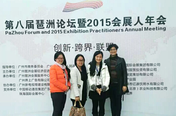 2015年12月30日,由广州琶洲会展经济促进会主办的“第八届琶洲论坛暨2015会展人年会”在广州地标性建筑广州塔举行。本届论坛主题为“创新·跨界·联盟”,探讨新形势下国内外会展格局的变化及琶洲商圈的合作与联盟。中国会展经济研究会常务副会长储祥银、学术指导委员会常务副主任陈泽炎、广州市商务委员会副主任陈泳芳、广州市海珠区人民政府党组成员庄承汶等和来自全国各地的会展业界人士200余人出席了本届论坛。我院旅游管理系谭金凤副主任及会展专业教学团队受邀参加该论坛。