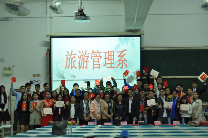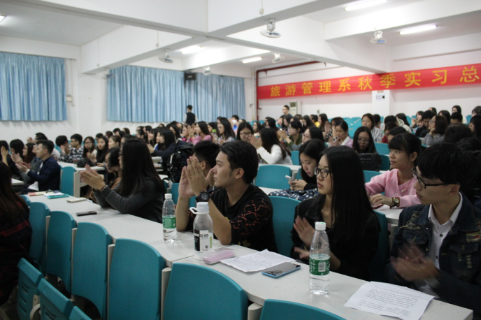 11月30日晚,旅游管理系在南华工商学院黄埔校区南区C203课室隆重召开2015年秋季实习总结表彰大会。旅游管理系胡家夏主任、谭金凤副主任、各教研室主任和专业老师、辅导员、教学秘书及近200名实习学生参加了会议。