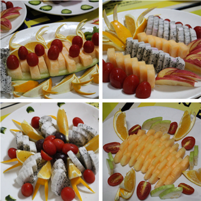 在学院、系部领导的大力支持和各位老师的精心培育下,2016届烹饪工艺与营养专业的毕业生经过两年多的辛勤耕耘,成就了今天不平凡的自己。他们即将迈出校门,踏上人生发展的新旅程。当天,同学们各展才能,做出在校园里可能是最后一件的作品,并举行了作品展。白切鸡、白灼虾、水煮牛肉、清蒸多宝鱼等特色菜点仿佛是一场经典的美食盛宴。水果拼盘令人目不暇接,各色作品巧夺天工。展台上西点蛋糕琳琅满目,同学们高超的糕点制作技巧可见一斑。