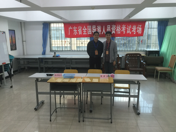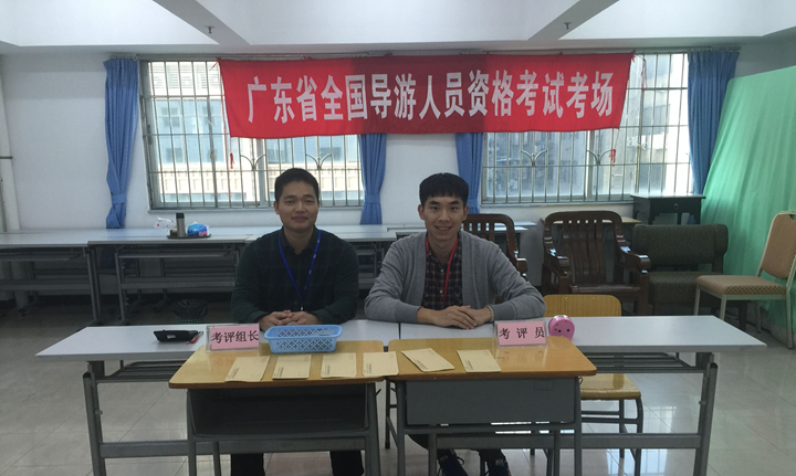 2015年全国导游人员资格考试广东省考区的口试工作即将拉开帷幕,当所有考生都在努力认真的应对考试时,考官们已经率先进入工作状态。旅游管理系旅游管理专业教研室主任梁滔滔老师和专业教师郭伟欣老师担任本次考试的考评员工作。