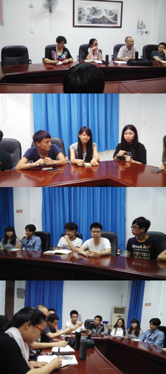 会议由谭金凤副主任主持,师生们在轻松融洽的气氛中讨论。首先各班代表从学生角度反馈本学期各科任课教师的授课情况,对优秀的任课教师毫不吝啬地表示喜爱,同时也提出教师教学、课堂管理以及课程设置等方面的意见和建议。同学们还反映了网络、用水等生活上的问题,希望学院相关部门帮助解决。张树清老师、陈晓华老师两位专业主任针对学生提出的问题做出详细的解答,谭副主任肯定了学生代表如实反馈、大胆献策的表现,并强调希望班干部发挥桥梁作用,多多与老师交流,促进师生双方共同解决问题。