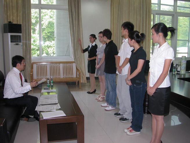 本次招聘面向07旅游管理、酒店管理、涉外旅游管理、08级涉外旅游管理和涉外酒店管理,面试采用全英文对话方式,从专业素养及英语听说能力等综合素质方面进行全面考核,每十人一组经过两轮面试,其中24名同学凭借出色的表现成功入围。