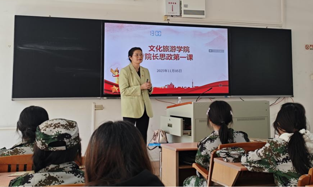 谭金凤结合学院专业特色指出,文旅学子要自觉担当红色基因的传承者,积极投身专业实践,通过红色研学、短视频创作、志愿讲解等多种形式,讲好中国故事,传播正能量。她希望同学们将个人成长融入国家发展大局,锤炼过硬本领,在实干中展现青春担当。