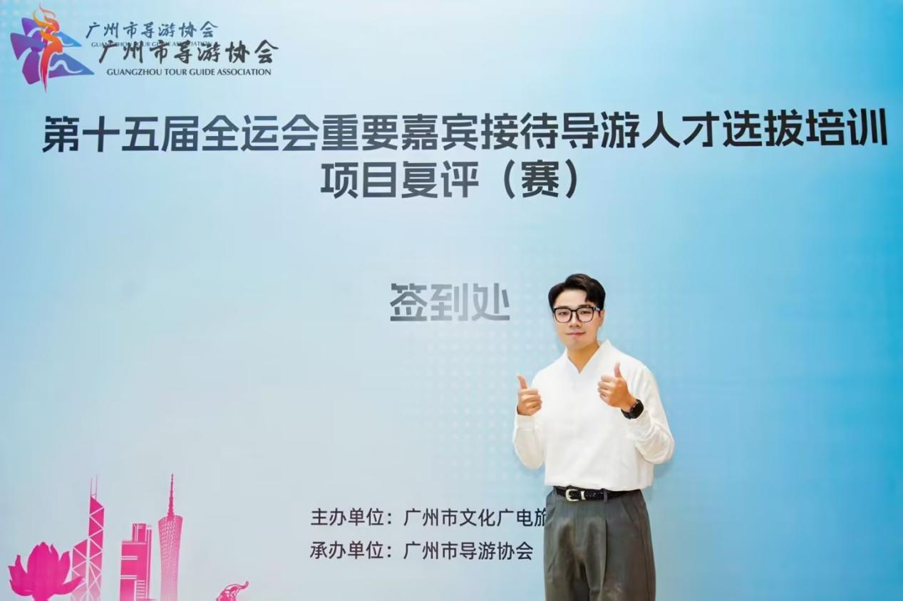 近日,第十五届全运会重要嘉宾接待导游选拔工作圆满结束。在由广州市文化广电旅游局主办、广州市导游协会承办的选拔活动中,来自文化旅游学院2023级旅游管理专业的陆子睿同学和毕业生梁文斌凭借优异表现,成功入选为全运会重要嘉宾接待导游。