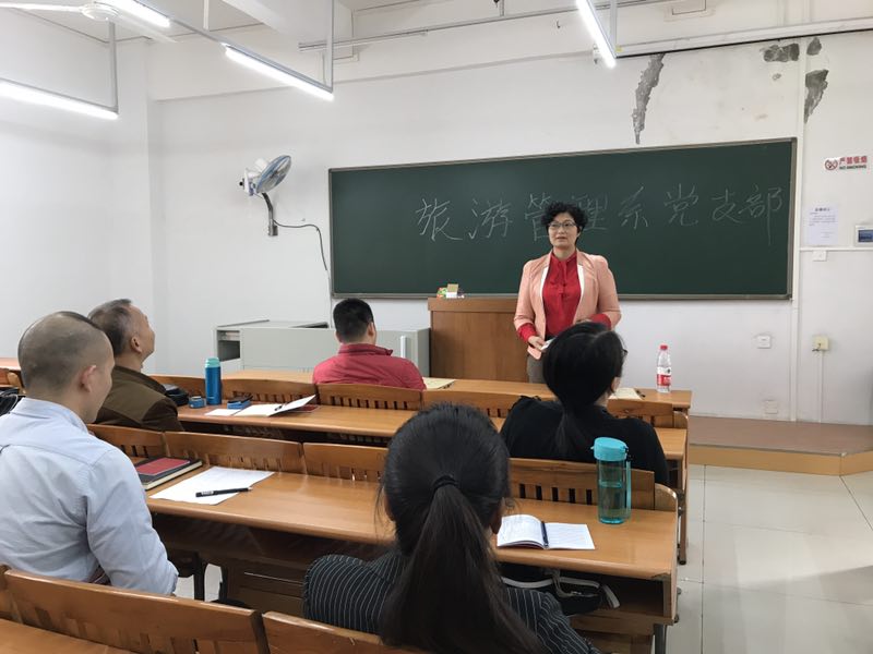 按照习近平总书记的重要指示精神,根据《学院(校)2017年党的工作要点》,2017年4月14日,在清远校区教学楼415课室,旅游管理系党支部举行“两学一做”学习教学系列活动之“学用结合 知行合一”,由党支部谭金凤副书记主持。