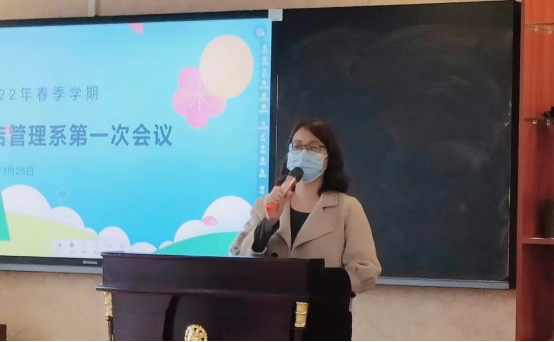 图一 酒店管理系主任陈丽芳主持会议
