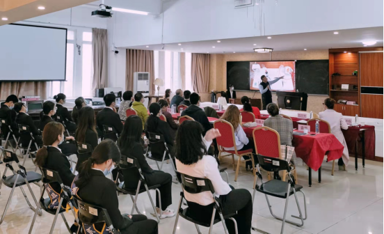 随后,由沐辰学院院长潘家佳对2022年广东省职业院校学生专业技能大赛“餐厅服务”赛项广东省选拔赛备赛进行全面剖析和总结,重点讲解了中餐服务与摆台、西餐服务与摆台、参赛学生训练管理、成果转化等内容,着重酒店管理、餐饮管理等旅游大类专业人才的培养成效,深刻理解以赛促训、以赛促教的教学育人模式,未来更好地培养和展现现代大学生良好的职业技能和形象。