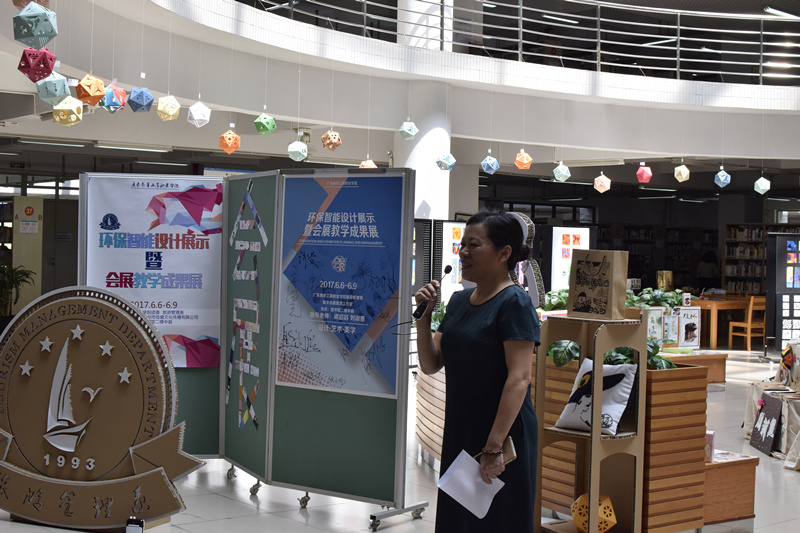 6月6日至9日,学院团委、旅游管理系主办的“智能环保设计展示暨会展教学成果展”在清远校区图书馆二楼中庭开展。马栩生常务副院长,王满元副院长,清远综合办韦秀华主任,图书馆谢曼馆长、杨斌主管,教务处郑海清副处长,院办公室余柱青副主任、团委刘晓玲老师等领导莅临会场参观。
