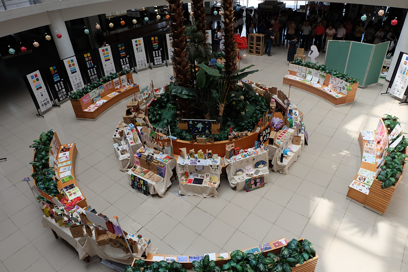 第二个项目是“会展教学成果展”,该项目是由会展策划与管理专业的刘淑惠老师在2016级会展专业的授课过程中的教学产品。通过《构成》与《平面设计与基础应用》两门课程的学习,同学们在短短一个学期的学习过程,就设计出众多缤纷多彩的作品。学生们亲手设计与制作的抱枕、笔记本、T恤、环保袋等陈列物品,通过“创意集市”的买卖方式,将产品的包装设计、书本的版面设计融入到人们的日常生活领域,将作品与市场融合,充分展示了南华学子的动手能力和创新能力。