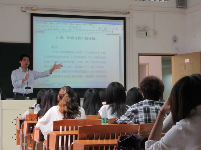 为进一步加强对青年教师的引导和培养,增进相互交流与学习,旅游管理系于11月18日上午10点20分在南区C101开展了教学公开课活动。旅游管理系主管教学副主任谭金凤、烹饪工艺与营养教研室主任张树清、酒店管理教研室主任陈丽芳、张文副教授、詹小丽老师、陈健玲老师、吴双丽老师参加观摩了由旅游管理教研室主任梁滔滔讲授的《导游实务》。
