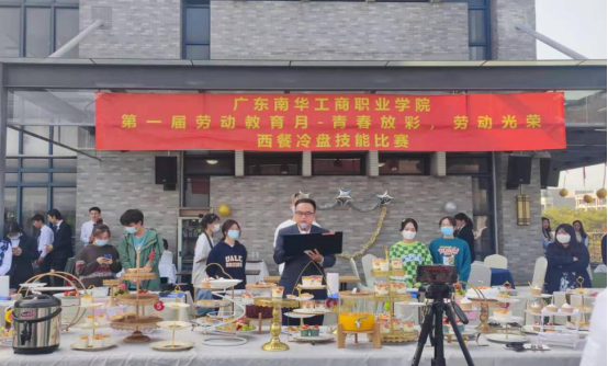 2021年12月24日下午2时,图书馆三楼酒吧服务与管理实训室(九分馆)迎来了广东南华工商职业学院第一届劳动教育月——“青春放彩,劳动光荣”西餐冷盘技能比赛。该比赛由劳动教育领导小组主办,教务处指导,文化旅游学院承办,文化旅游学院酒店管理系理事会协办。比赛同时受到广州富力君悦大酒店、广州柏悦酒店、清远市旅游协会、广州沐辰教育咨询有限公司、美林湖温泉大酒店及东莞市伯顿饮食服务有限公司等合作企业的大力支持。