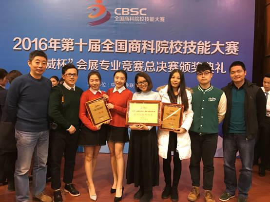 11月25日至27日,由中国商业联合会主办的“第十届全国商科院校技能大赛‘ 振威杯’会展专业竞赛总决赛”在天津滨海新区举行。经过激烈角逐,由我院14级会展策划与管理专业同学组成的两支代表队最终取得一等奖1项,二等奖1项的好成绩!同时,我院一等奖代表队因为出色的表现,受邀在颁奖仪式上作为优秀典型,面向全国101支代表队再展风采。此外,学院获得“最佳院校组织奖”,王超老师和梁滔滔老师被授予“优秀指导教师奖”。
