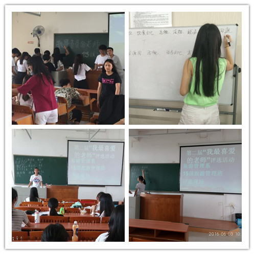 5月25日,2015级烹饪1班在清远校区教学楼419召开主题班会,开展评选“我最喜爱的老师”活动,院团委张一老师、旅游管理系熊汝鑫老师、黄隽老师出席了本次活动。活动开始由烹饪1班代表制作PPT介绍其专业的各任课老师,图文并茂地表达了对老师的敬爱之情。