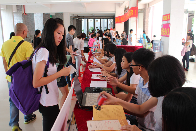 辅导员马佩佩老师、黄隽老师带领团总支学生会干部以及志愿者一早就到场工作。接待组,注册组,后勤组,咨询组等学生职能部门,分工明确各司其职,带着满腔热情迎接新生。作为师兄师姐,2013级学生干部经过一年的学习和实习工作,更加懂得乐于助人的深刻道理,所以能以贴心的服务迎接师弟师妹的到来。从校门的举牌引导,到系里大本营的真诚接待;从细致地登记新生们的个人信息,到搬运行李、指引到宿舍,所有的新生都享受到了他们师兄师姐们提供的微笑服务,充分感受到旅游系的热情和温馨。13-14日接连两天的迎新工作,忙碌而奔波,却并没有消耗大家的热情和动力,依旧以饱满的精神状态,为新生提供周到的服务。