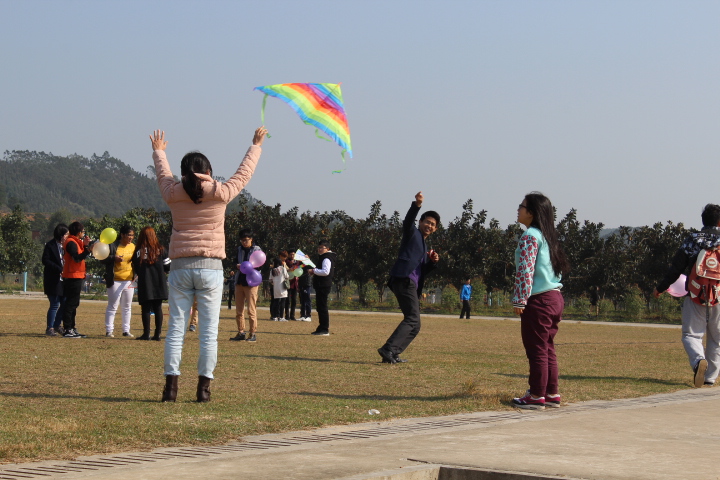 一条线、一张纸、几根细竹、几笔色彩就构成了理想的风筝,从理念的构想到动手设计,再到奔跑放飞风筝,学生们走下了网络、走出了宿舍、走向了操场。学生健康和谐的身心得到了锻炼与培养。放飞了风筝,放飞了梦想,也把最美好的祝福带到了南华美丽的蓝天。