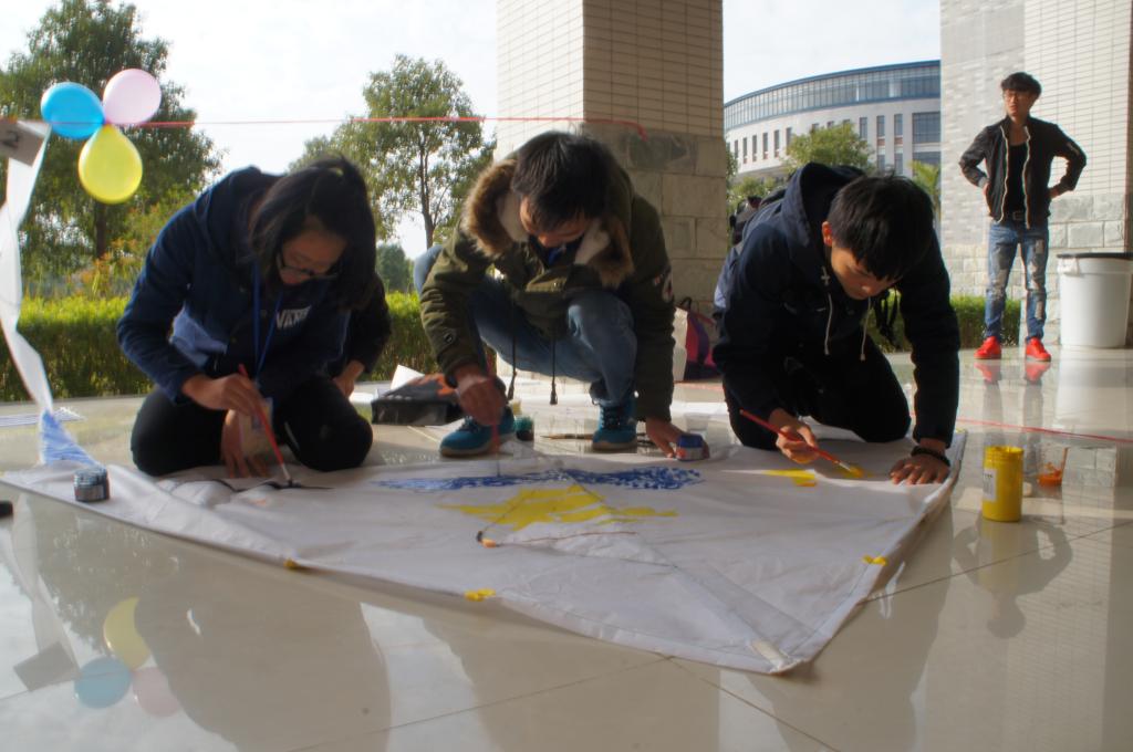 在轮滑社带来精彩刺激的花样轮滑秀开场后,风筝文化节正式开始。本次活动分为两个环节,“鹞文化,耀中华”风筝现场绘画设计比赛和“筝筝向上,我心飞扬”风筝放飞比赛。第一个环节,参赛队伍便携带着自己制作的空白风筝来到创作场地进行现场画图创作,各队伍都发挥自己的绘画天赋,在风筝上小心翼翼的创作。一个小时的现场设计后,各队伍赋予了自己风筝新的生命,在风筝上出现了火箭、超人、祝语旗帜、卡通人物、帆船雄鹰等图案。