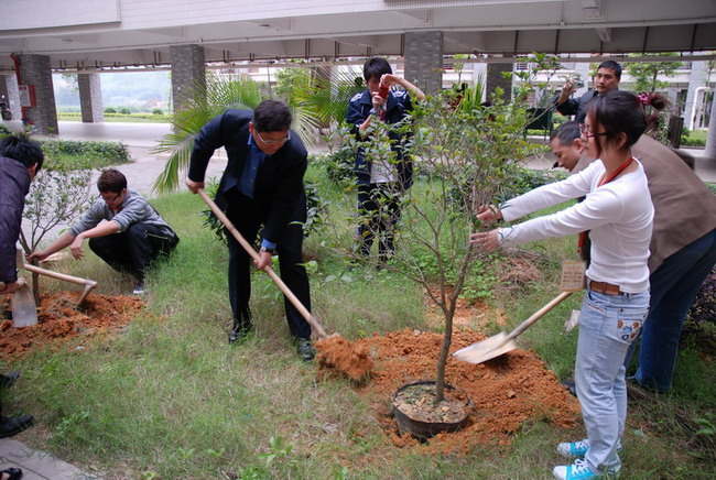 暖风吹得人人醉,春风已绿岭南天。2010年3月30日上午,旅游管理系(清远校区)在清远校区宿舍楼下进行了“爱我南华,美我家园”的植树活动。
