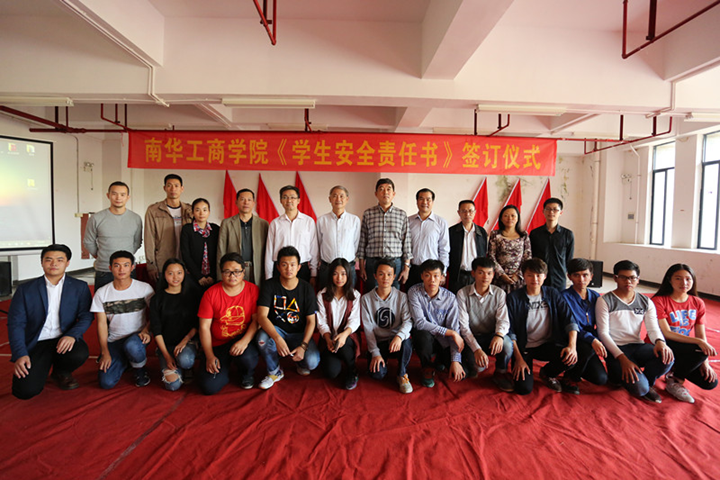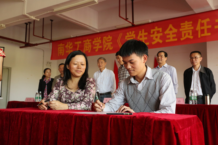 2015年11月5日下午3:15,旅游管理系在清远校区图书馆一楼举行了《学生安全责任书》签订仪式。学院院长易江博士、学院党委张皖明副书记、院长助理、清远校区综合办韦秀华主任、学院办公室谢启文主任、保卫处林平处长、学生处张朝山处长、旅游管理系胡家夏主任、学生处胡娟副处长、保卫处邱敏坚老师、旅游管理系熊汝鑫、黄隽老师出席了本次签订仪式。