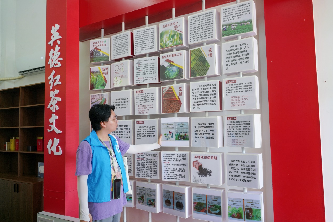博物馆讲解员用生动的语言讲述着英红的发展历程和英雄事迹,让团队成员在参观过程中亲身感受到英红镇深厚的红色文化底蕴。突击队各位同学深入探讨如何通过博物馆打造红色文化旅游路线,创新“旅游+茶文化”融合模式。