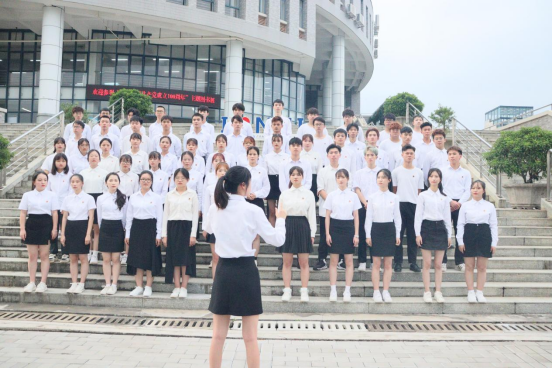 本次红色经典歌曲传唱活动,是我院学生党史教育学习的方式之一。在体艺部黄韵老师的指导下,自4月底开始,学生进行了近一个月的刻苦排练,身体力行地展现了新时代青年风采,表达了永远跟党走、奋斗新征程的信心和决心。录制当天,同学们着装统一、队伍整齐,胸前佩戴团徽,精神面貌积极向上,歌声嘹亮,演唱深情。一首《党啊,亲爱的妈妈》唱出了青年学子们感恩奋进的心声,唱出了对祖国、对党的无限热爱。而在演唱歌曲《中国,中国,鲜红的太阳永不落》时,同学们则手拿国旗和党旗,伴随着激昂的演唱挥舞着旗子,赞颂着祖国历经沧桑而从容不迫的光辉历程,展现了祖国发展的辉煌岁月。一首首脍炙人口的爱国之歌,爱党之曲,熟悉的旋律跳跃在耳边,爱国之情激荡在心间,颂党之恩融合在歌声中,引起了全体师生内心深处的共鸣。