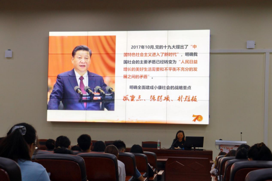 课程伊始,胡家夏书记从中国疫情防控、中美高层战略对话等时事热点切入,以习近平总书记关于党史学习的历年重要论述为题,重申党史学习的重要性。随后,以“没有共产党就没有新中国”为主题,回顾中国人在近现代史中挽救国家民族危亡的各个重大事件,并明确中国共产党成立的重大意义。胡家夏书记结合党成立后的四个重要时期,以及社会主义现代化的建设历程,特别是以国防科技的进步、经济发展的数据为例,说明了中国共产党带领中国人民从“站起来”到“富起来”的过程。最后,胡家夏书记通过丰富的实例,从坚持和坚信党的领导、坚持走中国特色社会主义道路、坚持唱响时代的主旋律三个方面,深刻阐述党的百年光辉历程给人们的启示。
