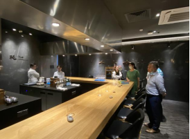 陈堪江带领参观了餐厅,内部装修采用黑灰色系,昏暗的灯光下营造出了神秘之感,令人忍不住去探索个中奥秘。餐厅主打的是新派粤菜,新派厨师运用现代的烹饪手法和混搭方式,重新演绎了粤菜之美,带给食客全新的味觉体验,呈现粤菜的创新特色。