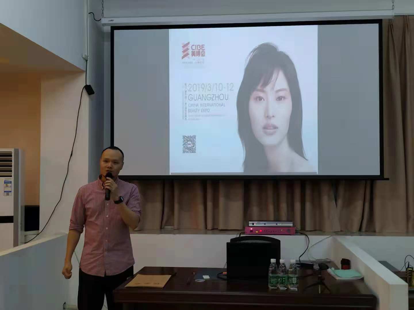 首先,黄永亮总经理介绍了个人的发展生涯以及国际美博会的发展历程、公司前景等,倡导同学们积极提升就业能力,并耐心地为在场学生答疑解惑。