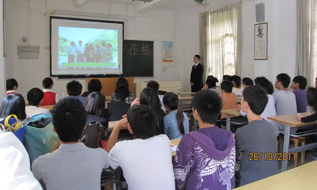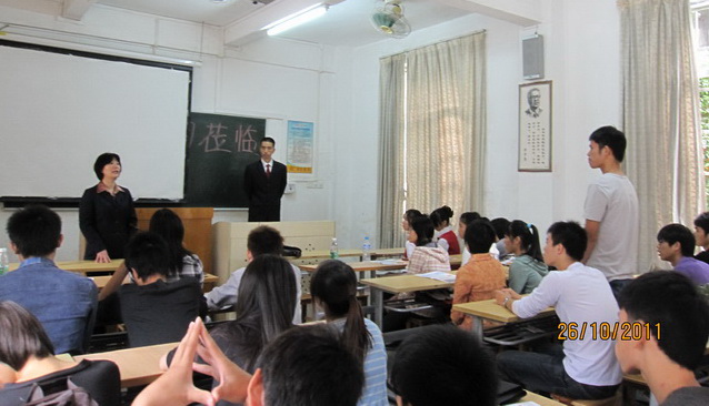 10月26日上午,在黄埔校区北区3-101课室举行了“碧水湾班”企业负责人与学生见面会。碧水湾温泉度假有限公司副总经理曾莉、行政人事部副总监张彦浩、旅游管理系副主任谭金凤、旅游系曹臣星老师、吴双丽老师及2011级首个“碧水湾班”全体同学出席了该见面会。见面会由旅游管理系副主任谭金凤主持。