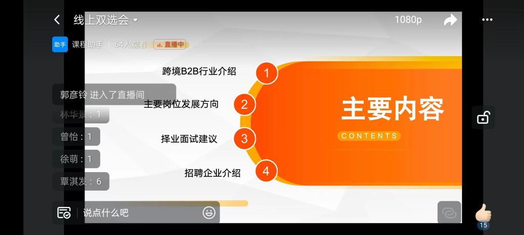 为了实现外院2024届毕业生“人岗精准匹配”的高品质就业,2023年12月26日下午,外语外贸学院联合阿里巴巴(中国)网络技术有限公司成功举办阿里巴巴国际站(跨境电商)线上专场双选会。此次人才双选会通过钉钉线上直播的形式进行,共吸引来自广州、深圳等珠三角地区的10家阿里巴巴国际站金牌优质商家参加我院的专场双选会,本次双选会招聘企业共提供外贸业务员、外贸运营助理、跨境电商运营、外贸平台运营跟单等超过50个招聘岗位。我院国际经济与贸易、商务英语、国际商务、关务与外贸服务、现代物流管理、应用英语、商务日语等专业近100名毕业生参加了双选会。