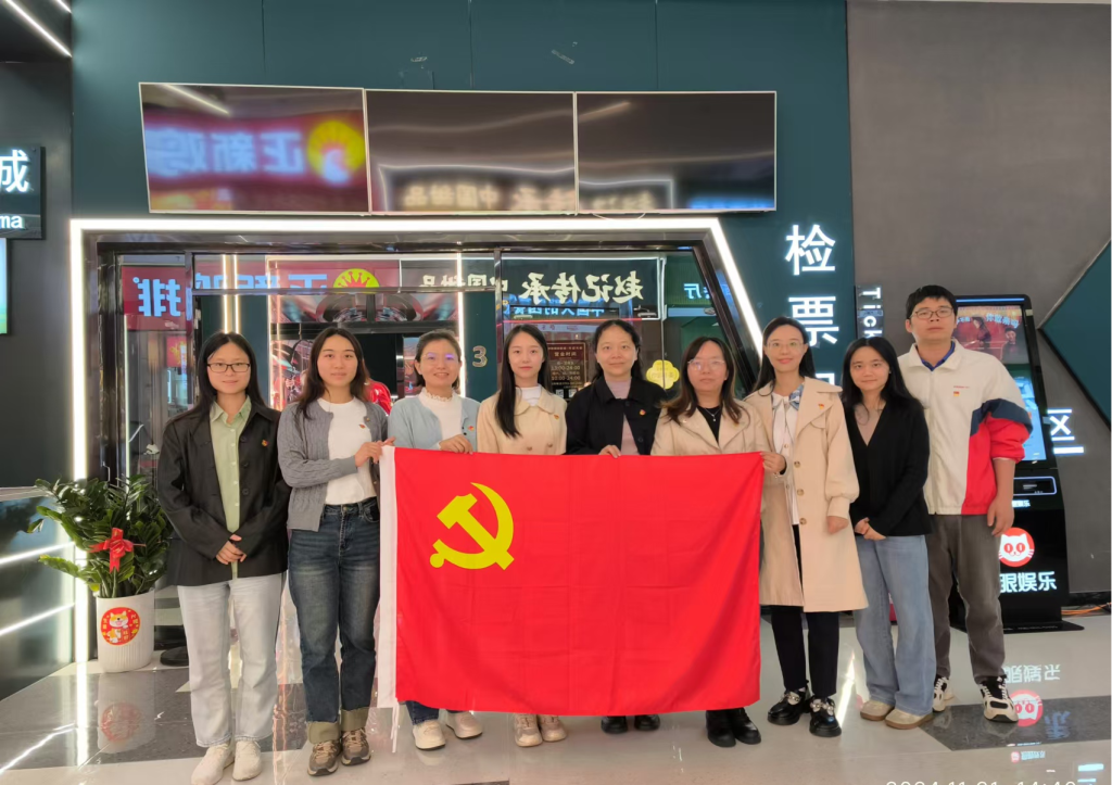 图为外语外贸学院党员们红色观影主题党日活动合影留念