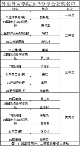 系列活动的第二部分是主题为“书香为伴,畅谈所得”的读书分享会。本次活动采取线上会议的形式进行,共分为初赛和决赛两个环节,决赛邀请了财务与金融学院学生会指导老师吴嘉媚、文化旅游学院学生会指导老师刘晓欢、法公学院团委副书记汤泳怡老师、外语外贸学院学生会指导老师唐嘉敏等担任评委。选手们以最饱满的状态对待比赛,他们精心挑选喜爱的书籍,以PPT演示或朗诵等多种形式向大家介绍、推荐。选手们声情并茂地向大家讲述书籍的精彩内容以及自己对书籍的独到见解,面对其他同学提出的交流探讨,他们也都有条不紊地进行阐释解答。活动经过初赛和决赛的选拔,最终评选出一等奖一名,二等奖四名,三等奖五名以及优秀奖六名。