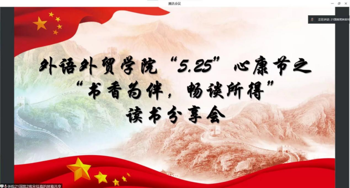 为营造学校读书氛围,使大学生从优秀书籍中汲取知识、浸润心灵,由校学生工作处主办,外语外贸学院于2022年5月25日至29日面向全校师生开展“5·25心理健康月”系列活动。本次系列活动共分为“读书漂流,心声分享”线下活动和“书香为伴,畅谈所得”线上分享会两个部分。