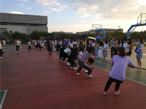 9月13日,新生杯拔河比赛在篮球场上如期举行,作为新生来校的第一个集体活动,同学们的热情高涨,积极参与。