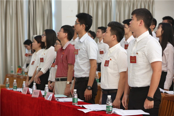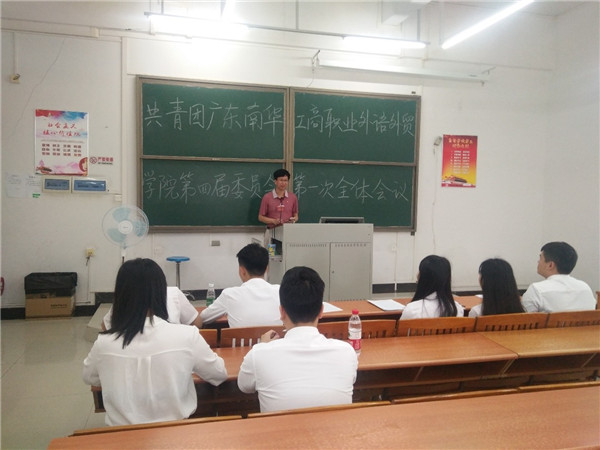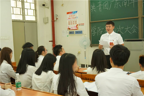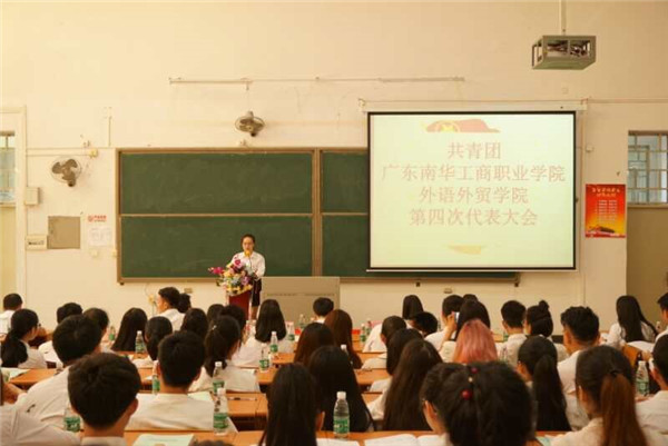 共青团外语外贸学院第四次代表大会于2018年6月10日上午在清远校区教学楼101课室顺利召开。出席本次大会的嘉宾有外语外贸学院党总支书记夏建兵,校团委副书记方永航及校团委委员、外语外贸学院党总支组织委员汤湘湘。大会应到代表113人,因病因事请假10人,实到代表103名,到会代表数超过应到会人数的五分之四,符合规定人数开会。