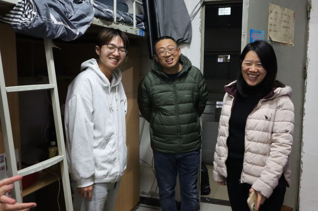 图一 院长李新、辅导员何抒恒关心学生学习生活情况