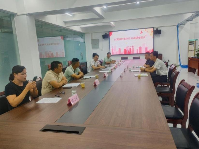 关亮炯介绍了白蕉镇村集体经济整体发展现状、主要模式及面临的共性挑战。调研组阐述了此次调研的核心目标—围绕集体经济收入结构、资源盘活、产业配套、利益联结及发展瓶颈等关键维度,全面收集数据,深度剖析发展难题,为白蕉镇集体经济高质量发展提炼可操作路径与精准建议。各村支书结合本村实际,重点介绍本村集体收入来源、集体产业特色、闲置资产利用现状及发展中遇到的瓶颈问题等,为调研组提供了丰富详实的基层案例。