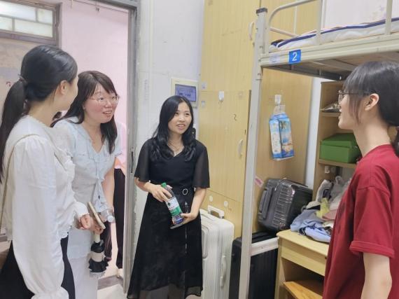 走访过程中,学院领导同新生进行了亲切地交流,“同学是从哪里来的”“有没有住校经历”“对学校的第一印象怎么样”“生活用品是否备齐?”.....一句句贴心的话语让离家的新生感受到来自学院的关怀和温暖。学院党总支书记刘爱玲仔细询问了新生们入住的情况,耐心解答同学们关于专业学习、校园设施等方面的疑问,并鼓励同学们尽快转变角色,熟悉校园环境,建立和谐融洽的室友关系,以积极饱满的心态迎接即将开始的大学生活。杨鹏强常务副院长针对新生提出的专业就业前景、企业实习实践等情况进行了详细的解答。