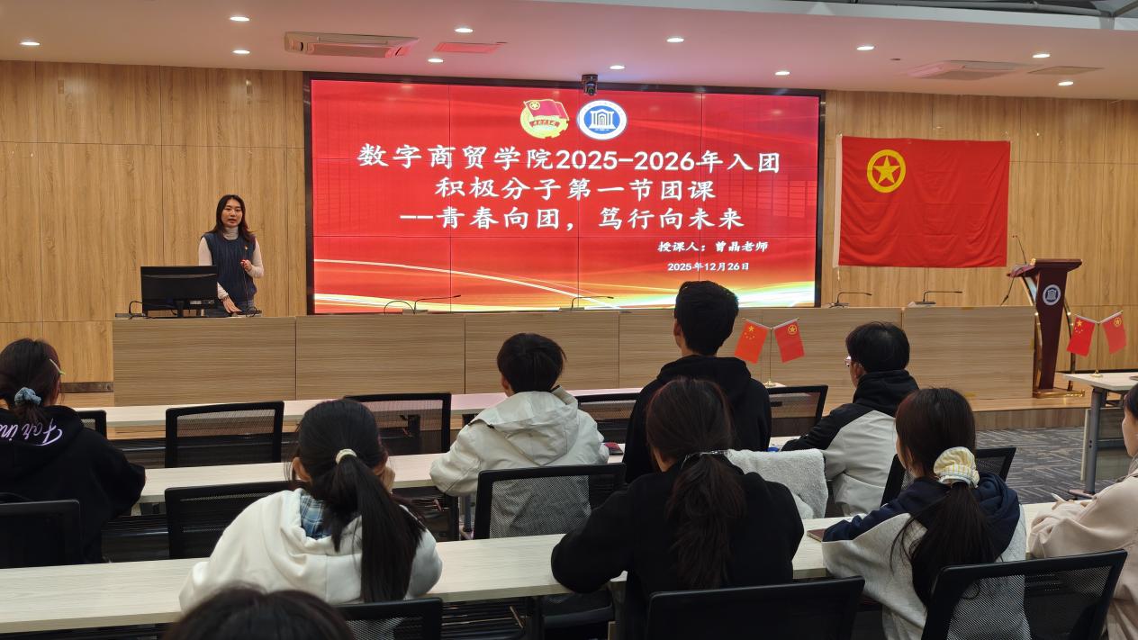 12月26日,广东南华工商职业学院数字商贸学院(简称“商贸学院”)面向156名入团积极分子开展2025—2026年入团团课开班仪式暨第一节团课。