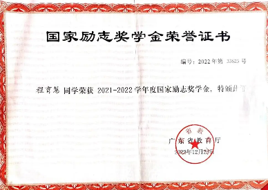 2021-2022学年,获广东南华工商职业学院“三好学生”称号;