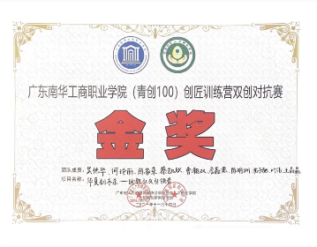 2021-2022学年,获广东南华工商职业学院青创100创匠训练营双创对抗赛金奖;